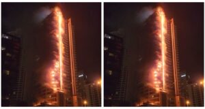 Un énorme incendie ravage un gratte-ciel pas loin de la Burj...