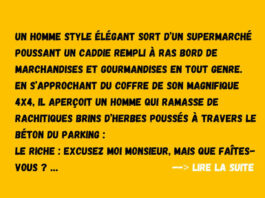 Un riche rencontre un pauvre à la sortie d’un supermarché