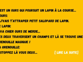 C’est un ours qui poursuit un lapin à la course