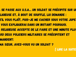 Blague : Un soldat se précipite sur une religieuse et, à...