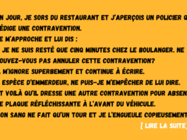 Un policier qui rédige une contravention