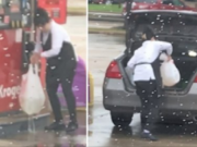 Incroyable mais vrai ! Une femme a été filmée en train de remplir un sac plastique d'essence avant de le mettre dans le coffre...